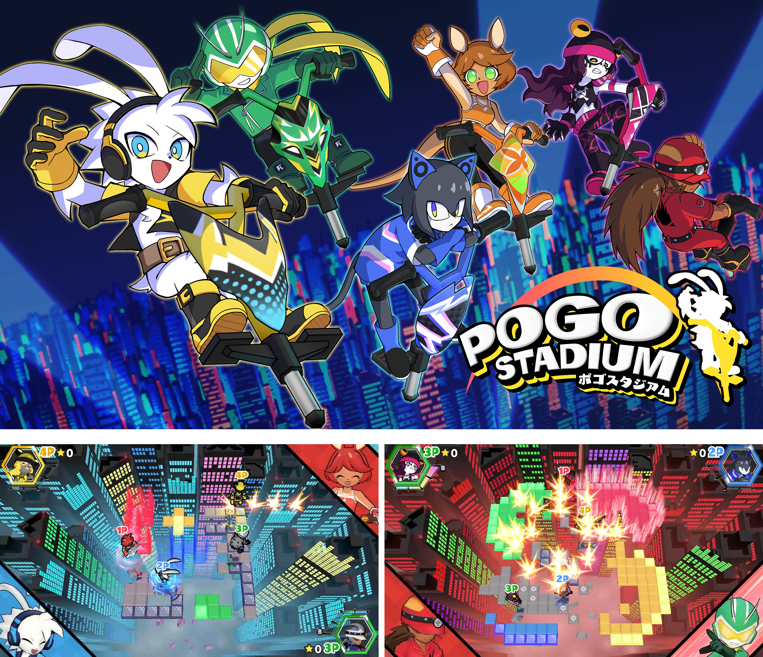 ホッピングに乗ったキャラクター達を操作し、ステージをうまく切り離して陣取りをする対戦ゲームです。