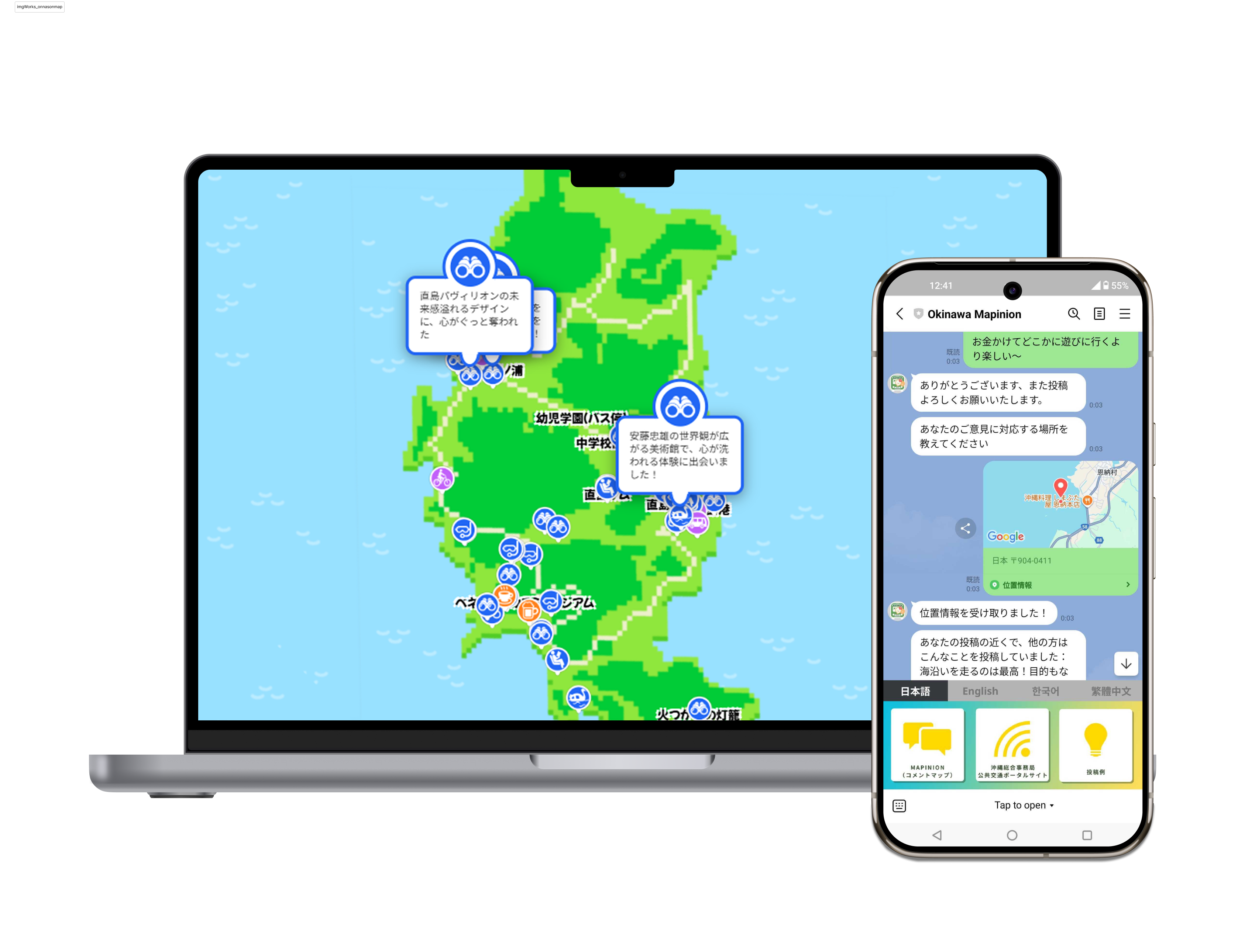 香川県・直島や、沖縄・恩納村周辺の観光スポットに対する感想や意見などを集約し、地図上に表示するWebアプリです。